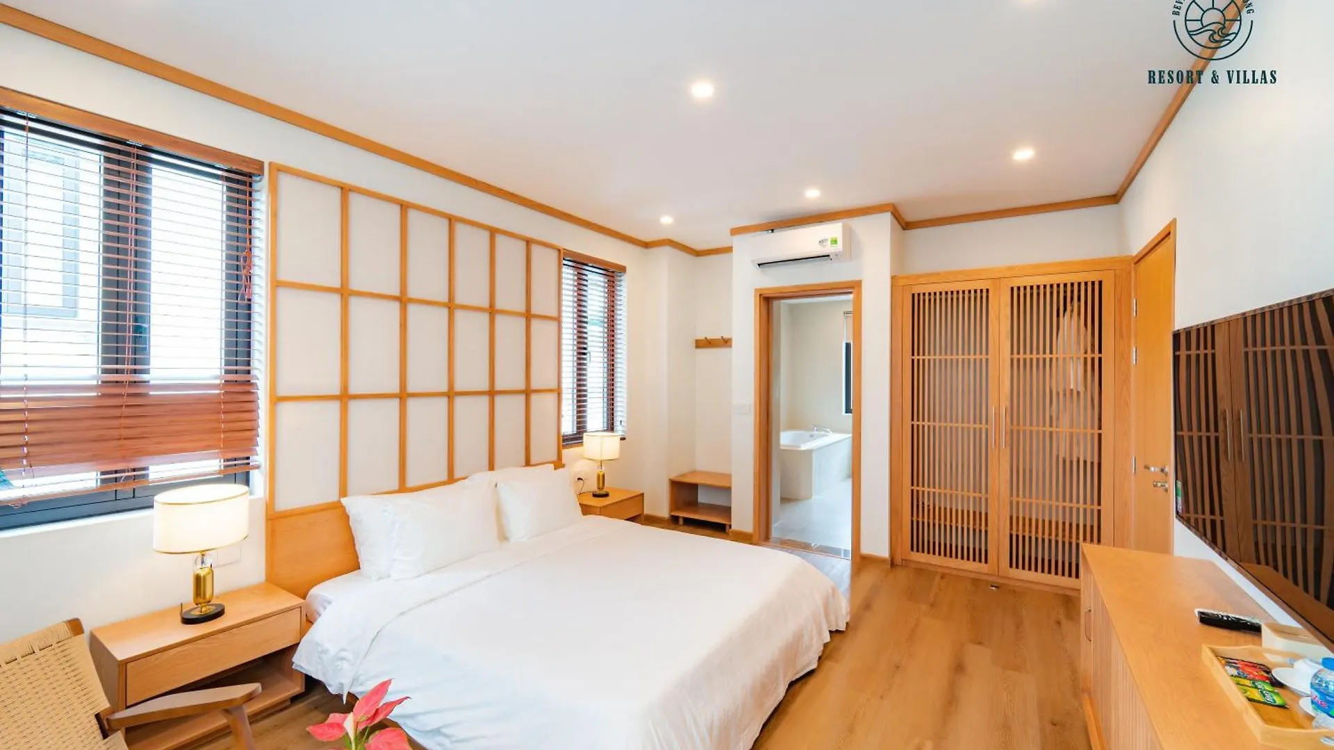 Con un balcone, le camere dell'hotel Beverly Hill Ha Long Villas And Apartments forniscono una TV a schermo piatto con canali satellitari. I tocchi piacevoli per migliorare il vostro soggiorno includono un bagno con WC separato e una doccia.